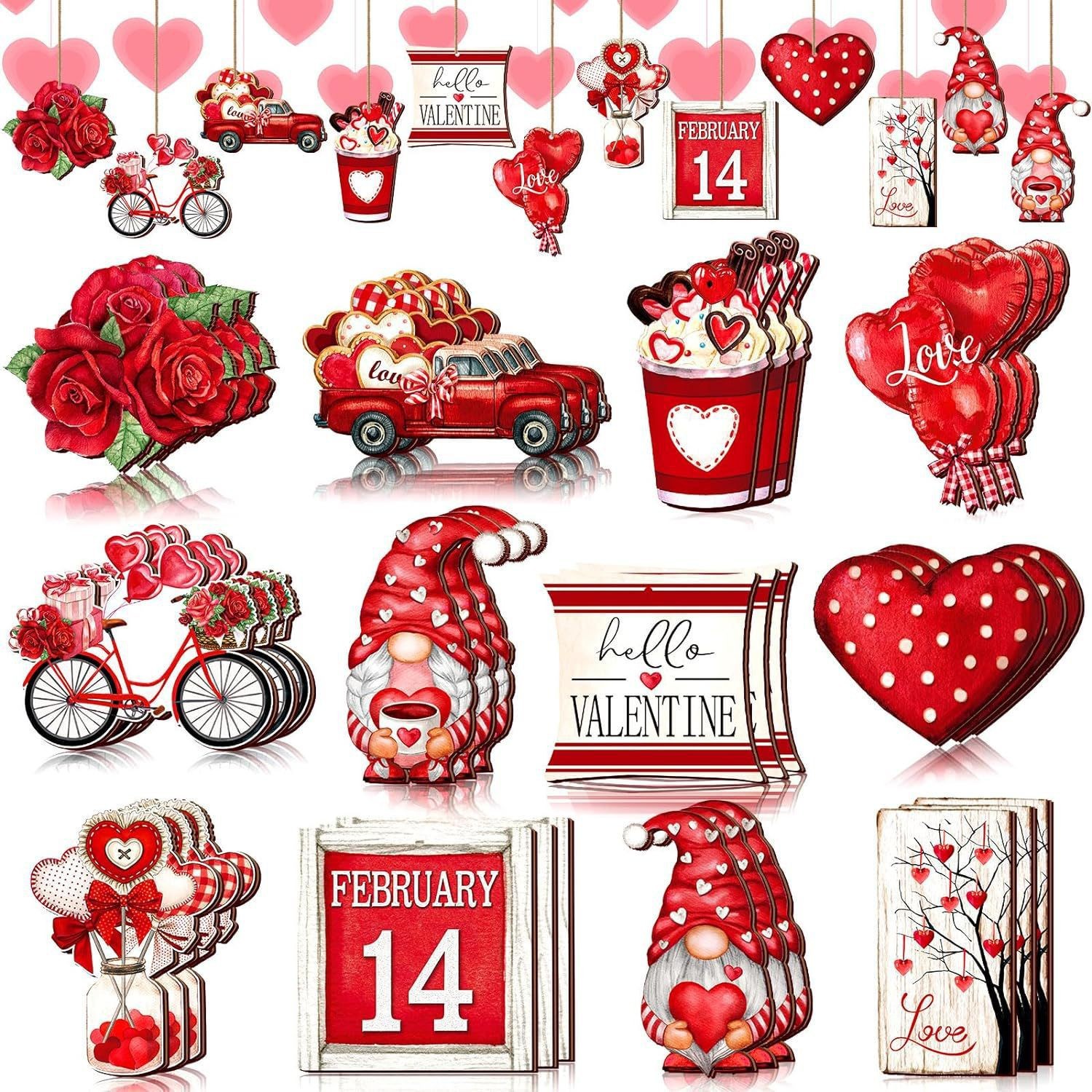 情人节24件2d平面木质悬挂装饰适用于节日氛围装饰布置