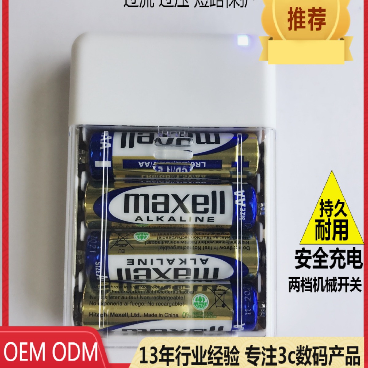 四槽干电池四节充电器户外应急锂电池爆闪手电筒便携充电可快充