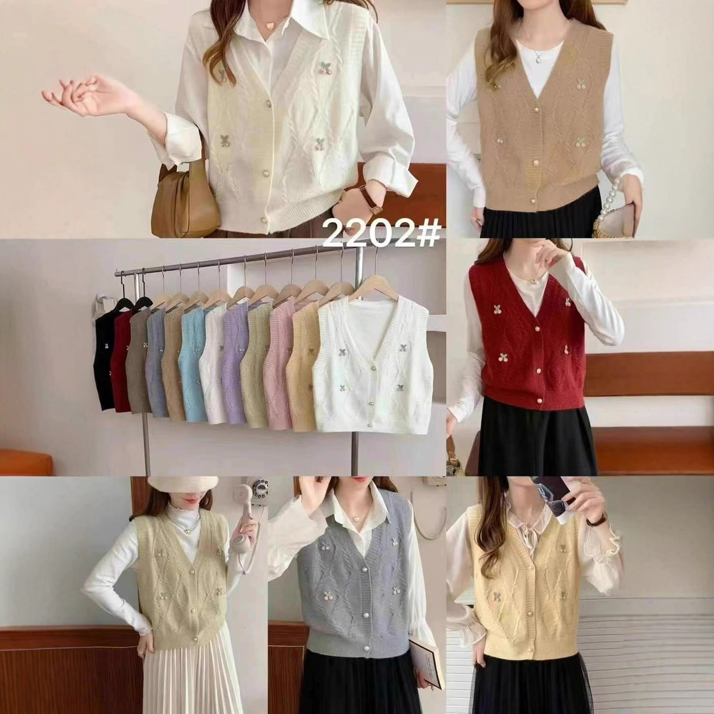 2025年跨境秋装V领针织毛衣马甲开衫外穿新款宽松加厚毛线背心