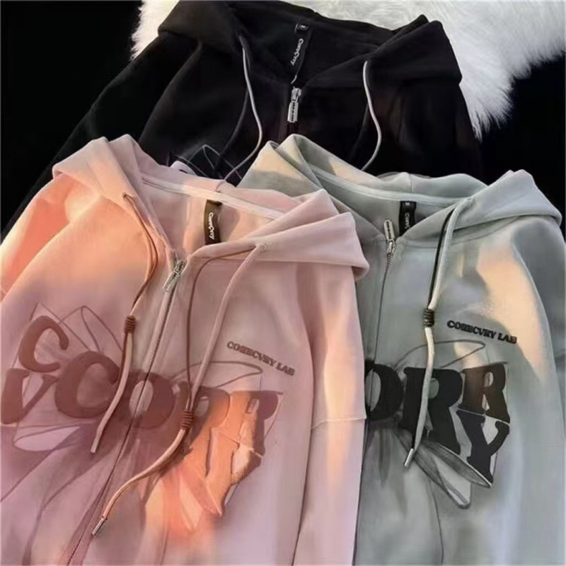 厂家直销拉链卫衣女连帽拉链开衫外套秋冬季百搭宽松休闲连帽上衣