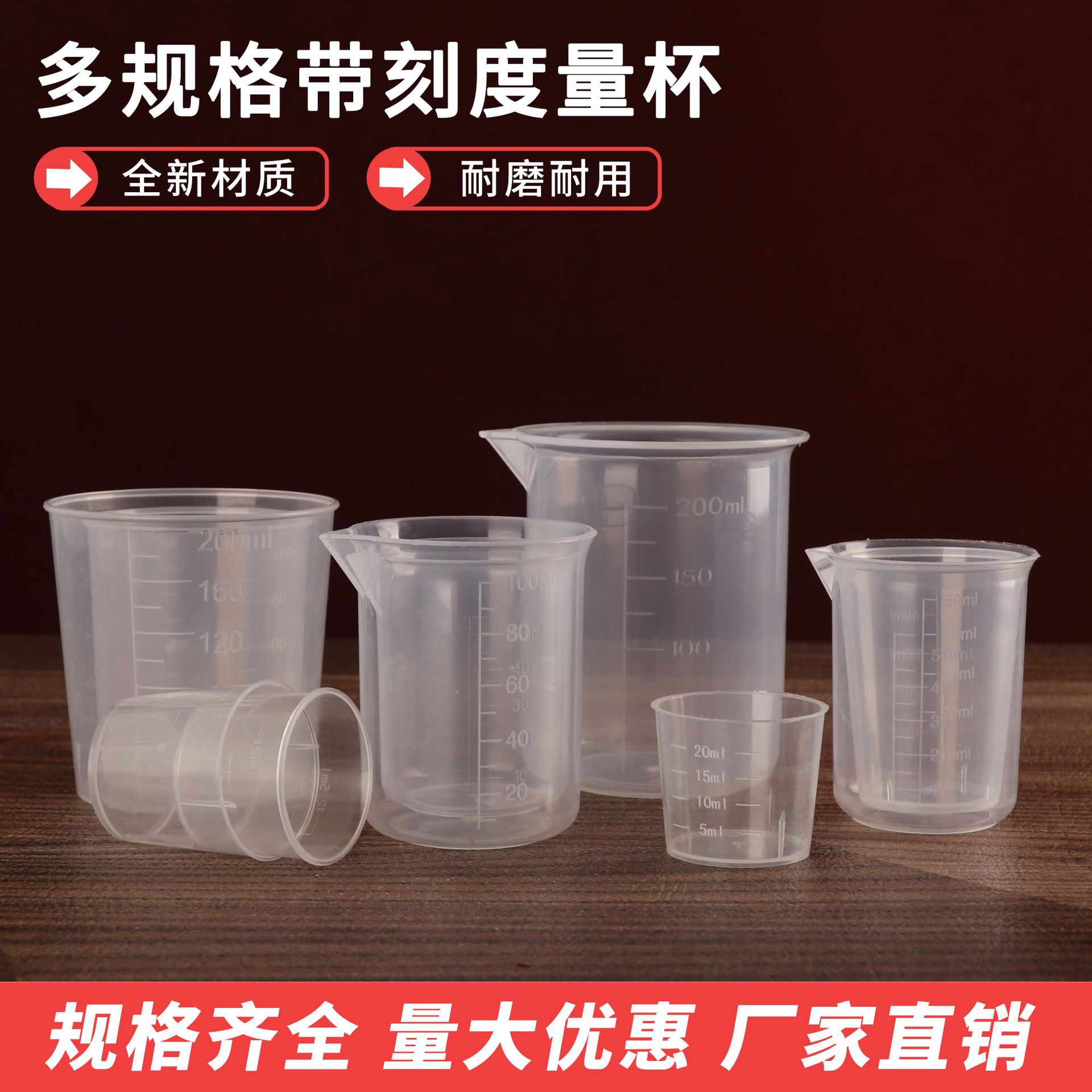 现货加厚无把小烧杯10 20 50 100 200mlpp刻度实验室家用塑料量杯