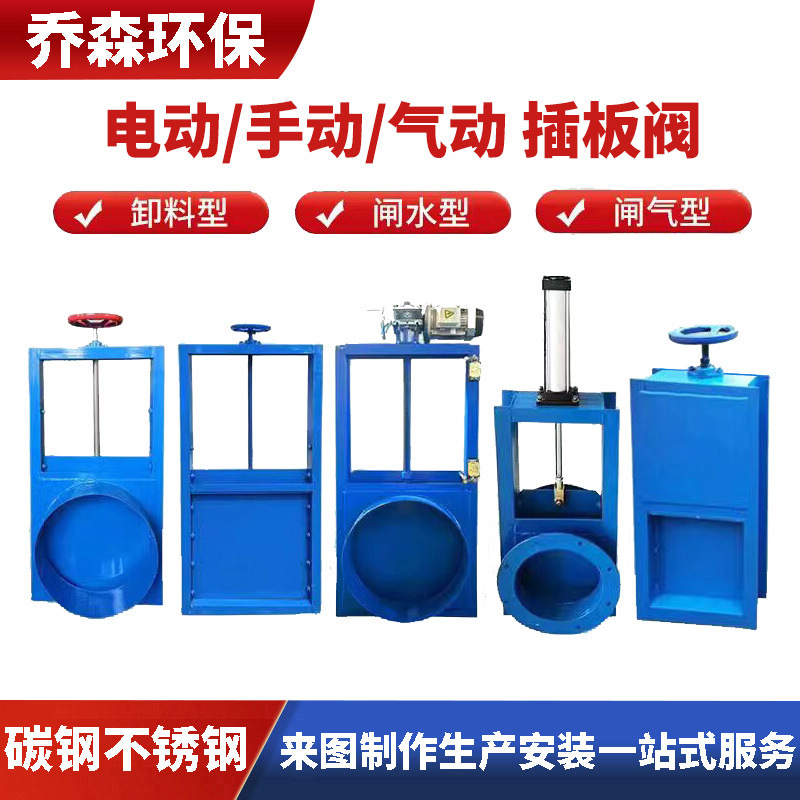 电动气动手动插板阀材质碳钢不锈钢水渠河道雨海水排污分流闸阀