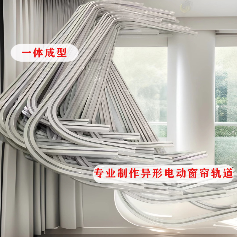 异形电动窗帘轨道弧型电动窗帘L形U形八字形电动窗帘遥控静音