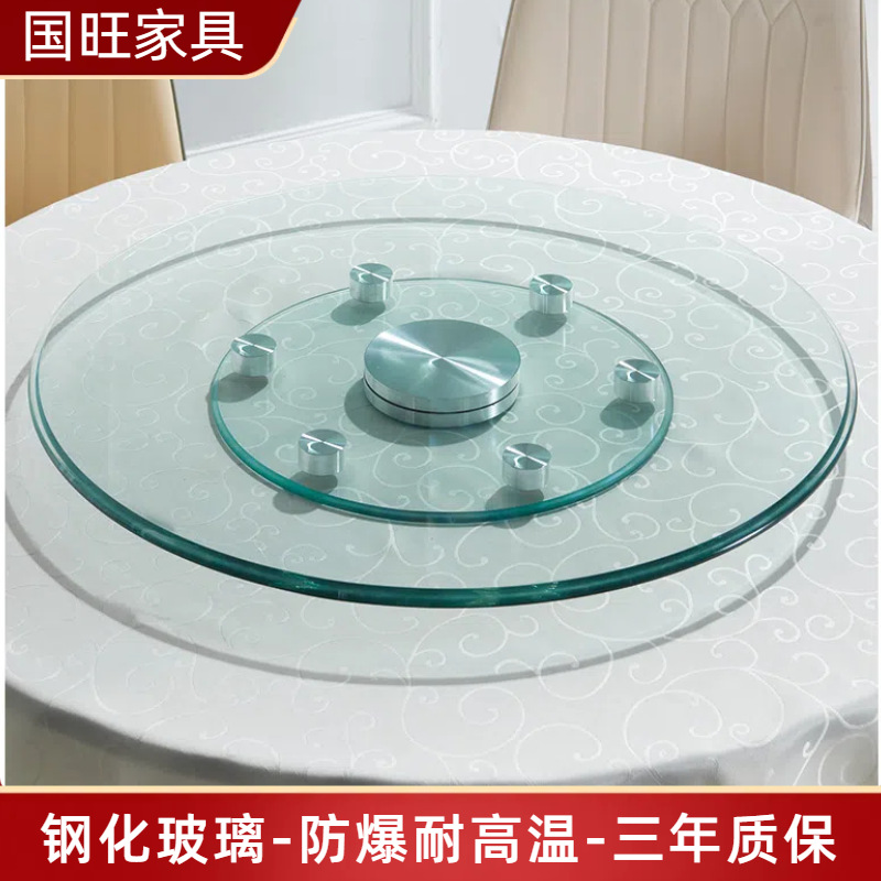 餐桌转盘钢化玻璃桌子圆转旋转底座大圆饭桌酒店桌面家用饭店圆桌