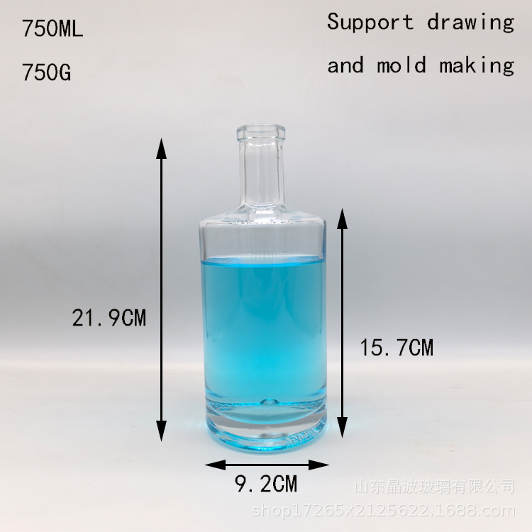 厂家定制750ml长圆柱玻璃酒瓶白酒红酒洋酒果酒伏特加酒瓶 印刷LO