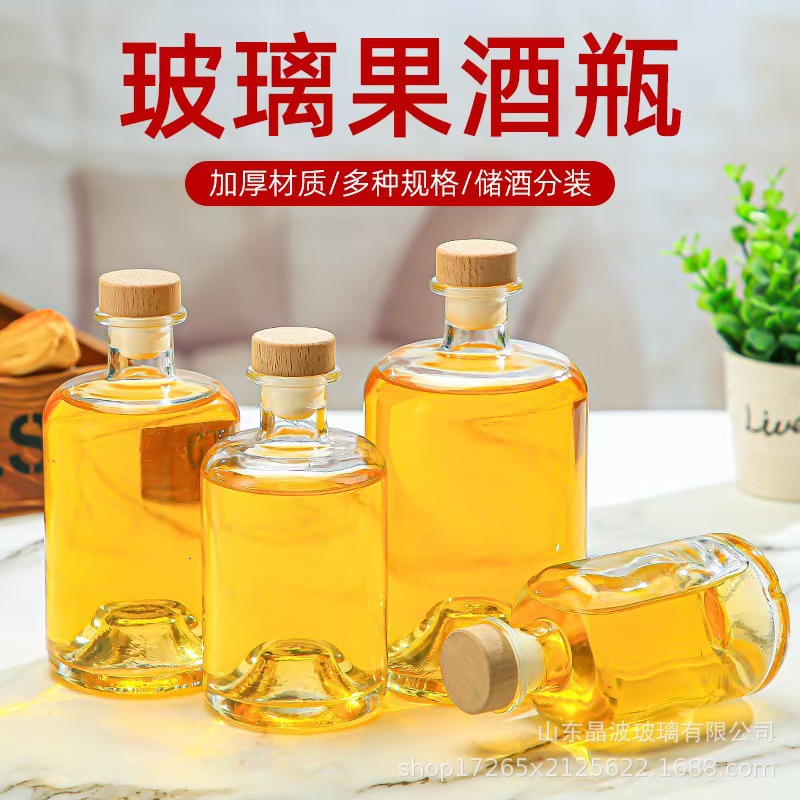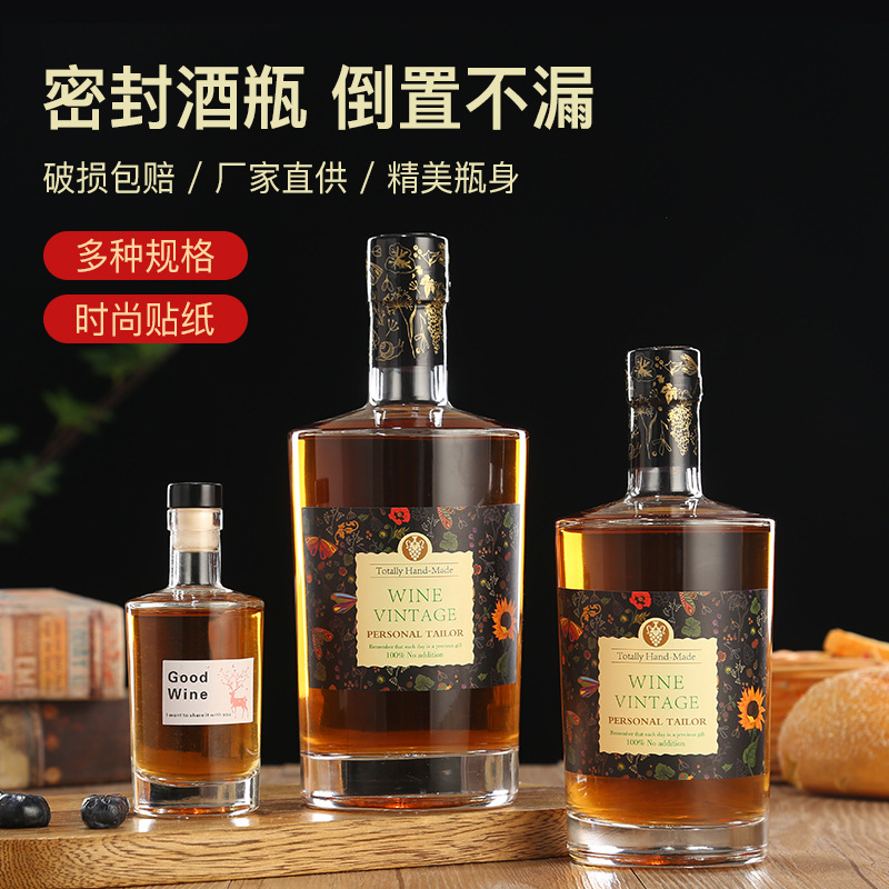 新款透明玻璃果酒瓶加厚密封储酒分装空瓶卡口密封饮料瓶果酒瓶