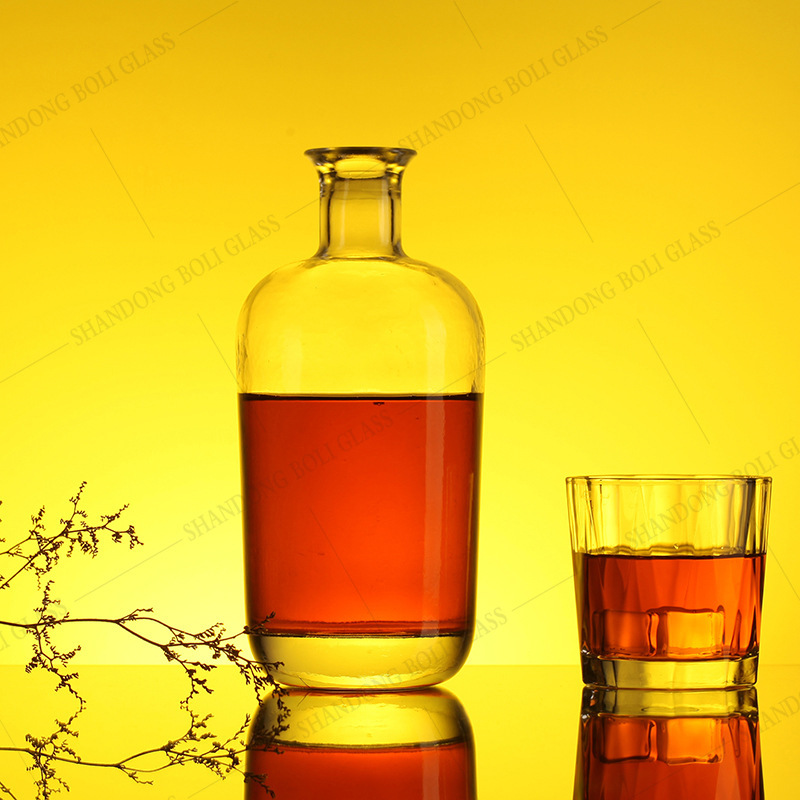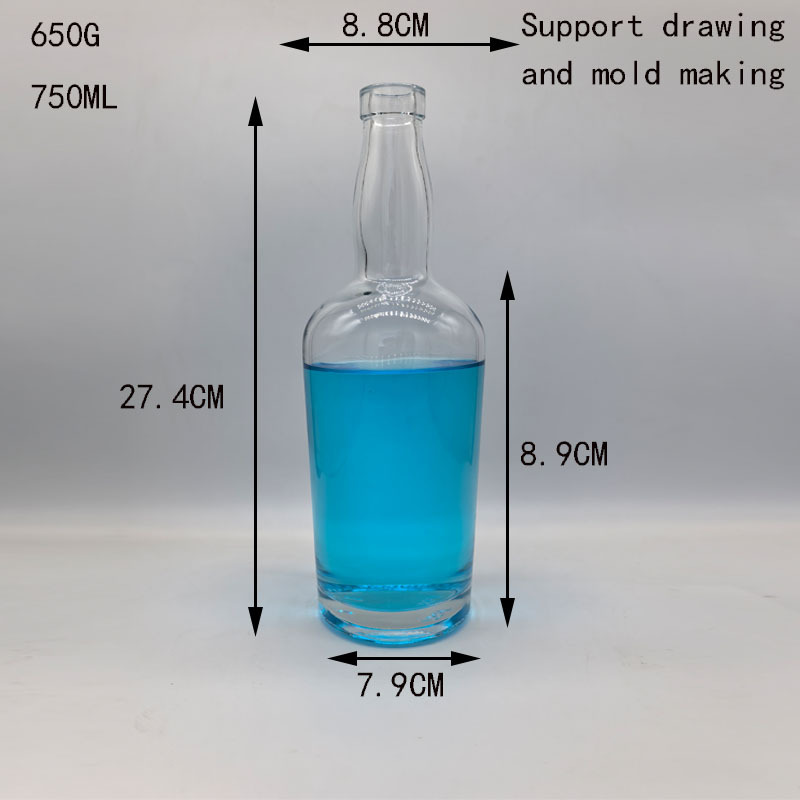 厂家定制畅销700ml透明玻璃瓶洋酒瓶龙舌兰酒瓶威士忌酒瓶 宽肩圆