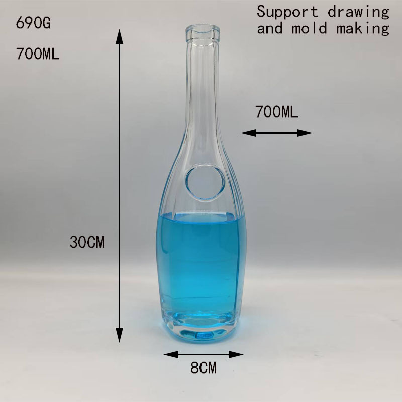 700ml透明玻璃瓶 晶白料平口凹底白酒瓶 洋酒红酒气泡伏特加酒瓶