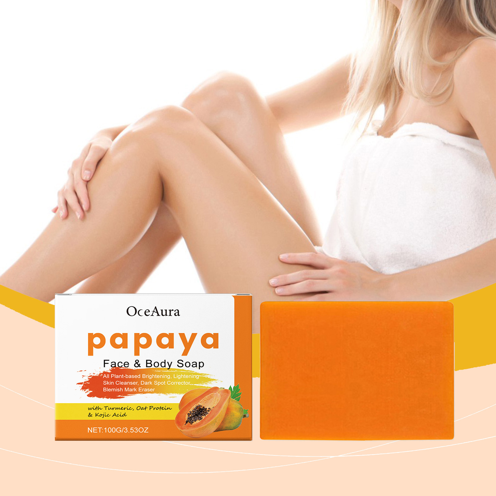 OCEAURA 木瓜姜黄浴皂 滋养皮肤光滑肌肤散发清香面部身体清洁皂