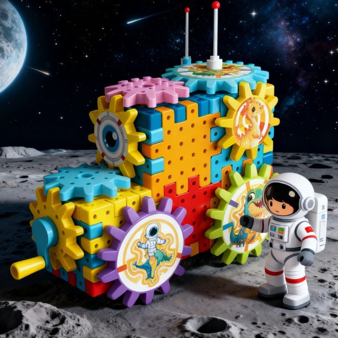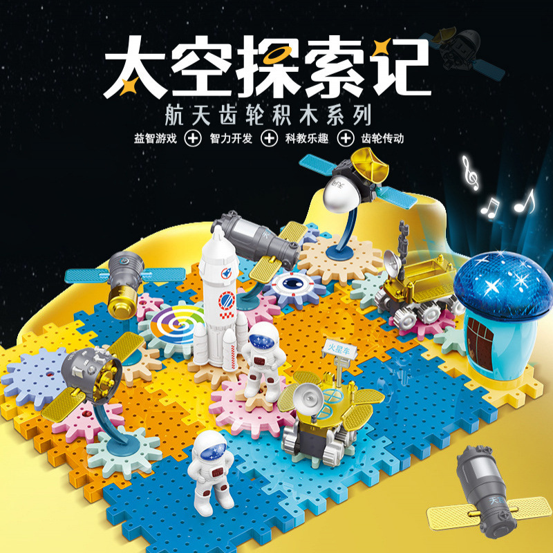 太空探险航天齿轮旋转积木电动男孩儿童拼装玩具礼物闪光积木拼装