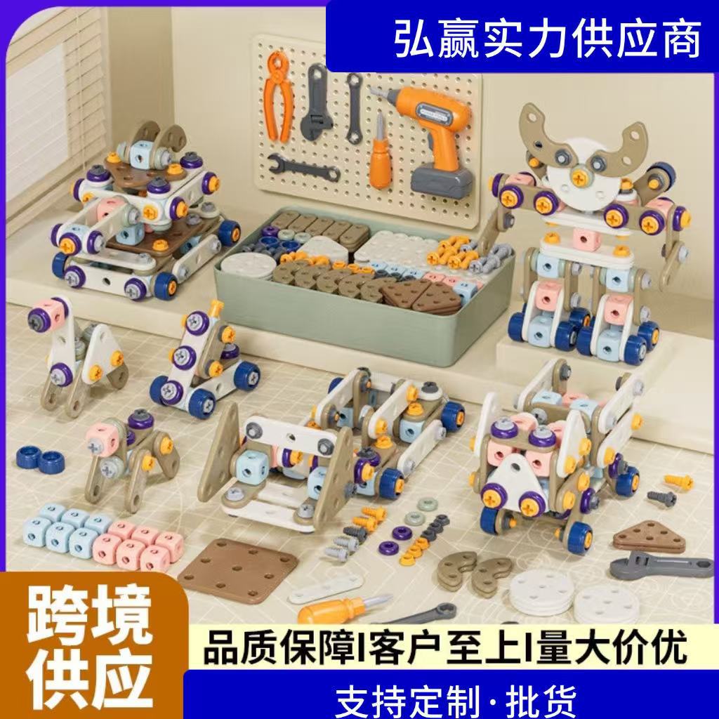 跨境宝宝拧螺丝玩具儿童DIY拼插电动打螺丝拆卸组装工具箱玩具