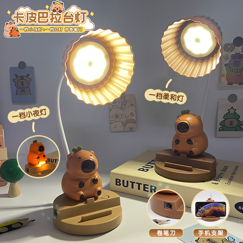 弘赢跨境热销卡皮巴拉多功能台灯夜灯带手机支架削笔刀玩具批发