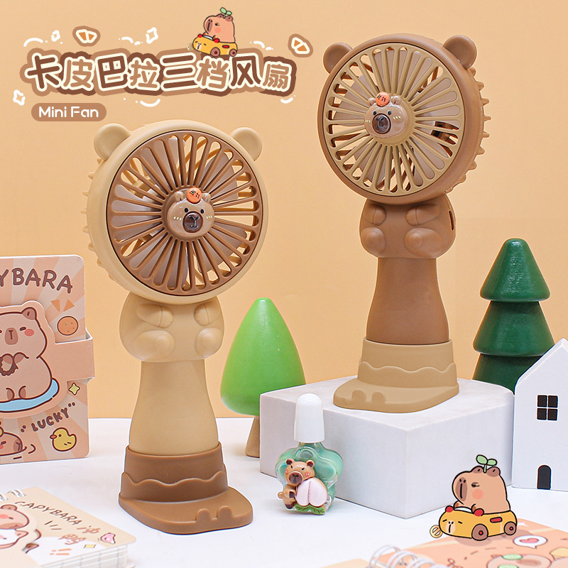 东南亚厂家夏季卡通卡皮巴拉三档风风扇usb充电手机支架充电式