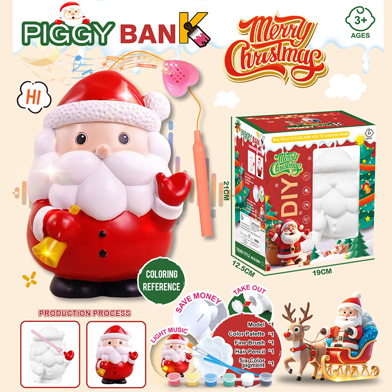 跨境圣诞节DIY涂鸦彩绘存钱罐玩具灯光音乐手提灯笼点钻批投币