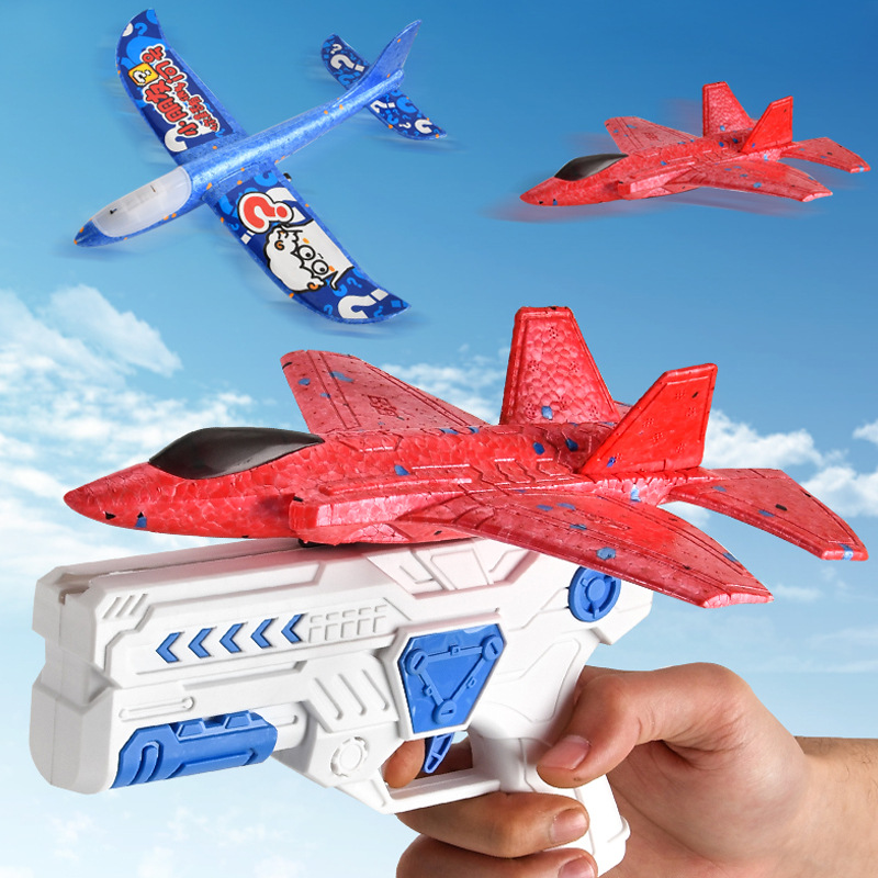 跨境弹射飞机枪儿童多功能滑翔回旋手抛飞碟发射器战斗机玩具