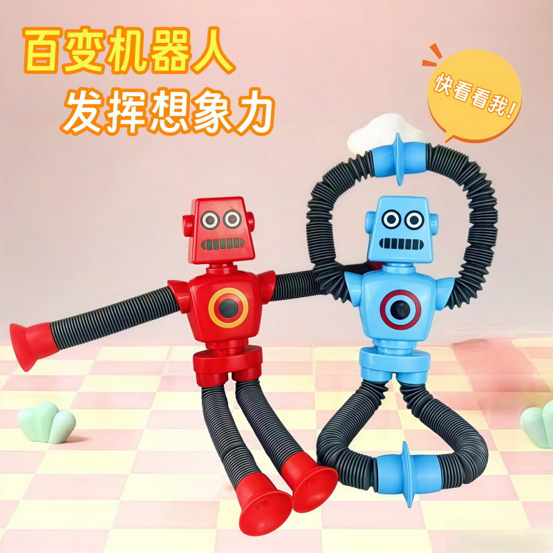 儿童亲子DIY创意解压儿童益智拉伸吸盘卡通百变吸盘机器人玩具