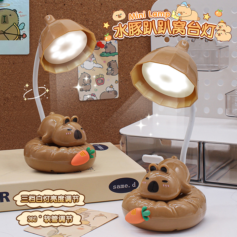 卡皮巴拉台灯水豚趴趴窝萌宠USB宿舍桌面床头小创意摆饰可充电