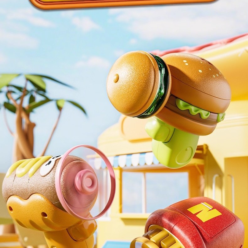 儿童汉堡薯条热狗旋转陀螺炫彩发光玩具枪竹蜻蜓户外飞盘益智玩具