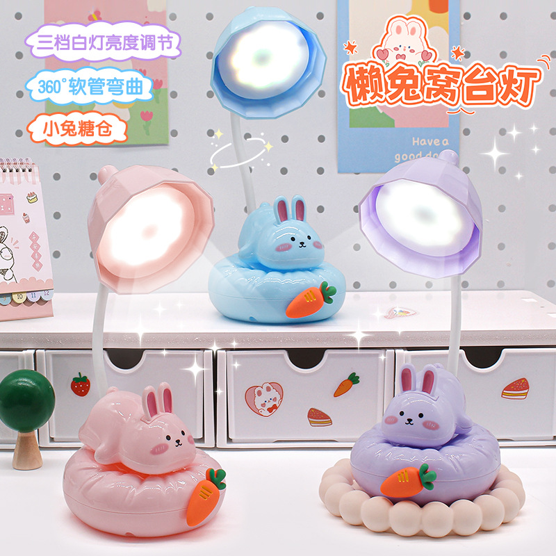 马卡龙色懒趴趴兔台灯学习寝室耐用可充电保护视力可爱摆件新款