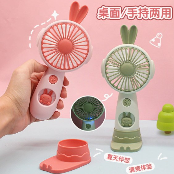 跨境新品2025兔子手持风扇带底座边贸越南三档小风扇厂家直销