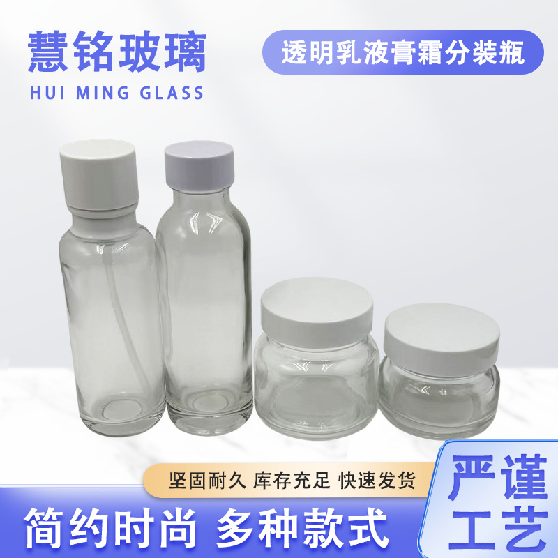 现货批发山羊奶50g至120ml乳液膏霜玻璃瓶套装护肤包装内塞精华瓶
