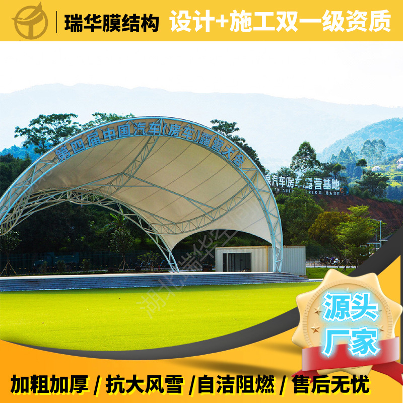 专业定制房车露营大赛舞台膜结构工程 景区游乐场舞台遮阳棚