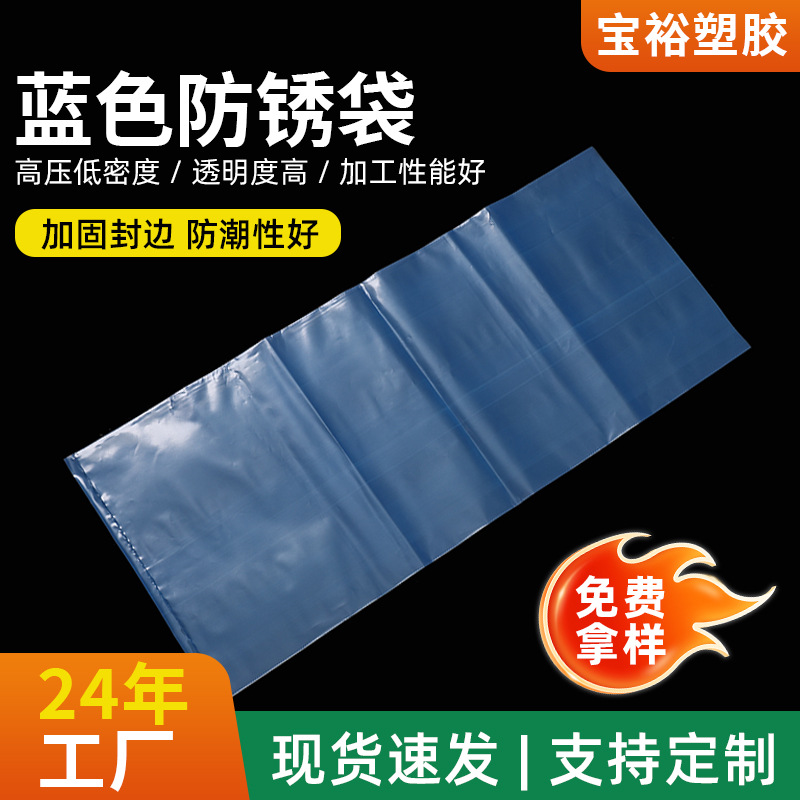 蓝色防锈袋高压低密度机械零件防静电平口塑料袋自封防潮加厚干净