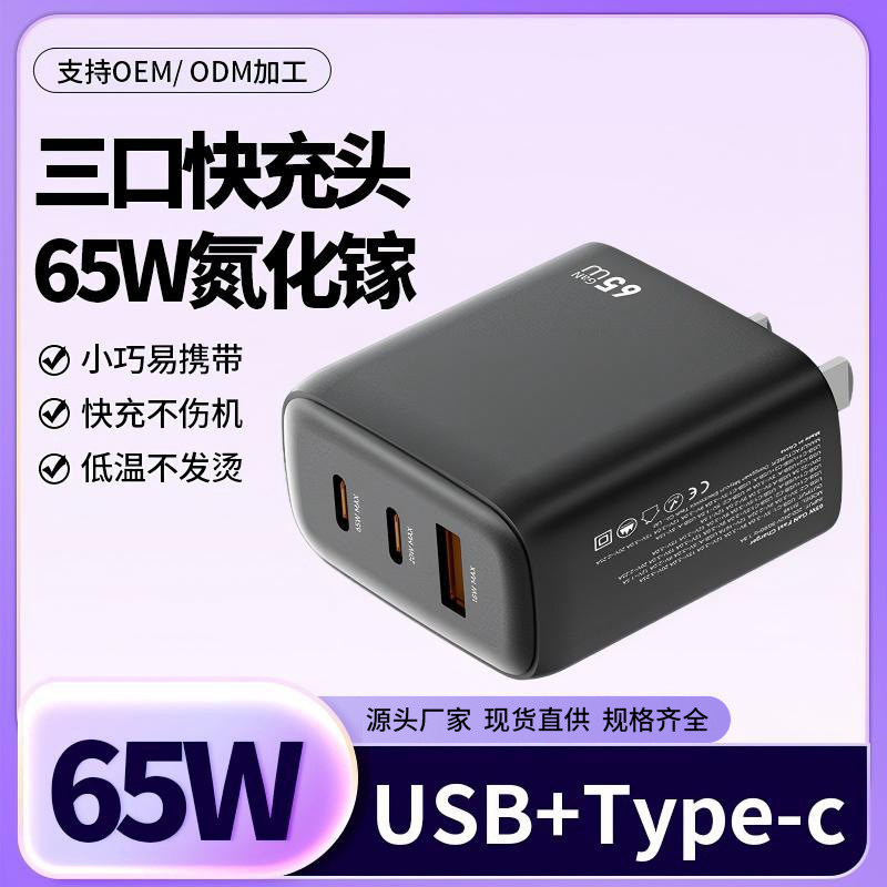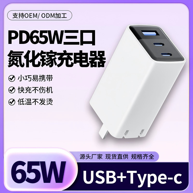 PD65W双口氮化镓充电器A+C适用于苹果三星华为手机超级闪充pd快充
