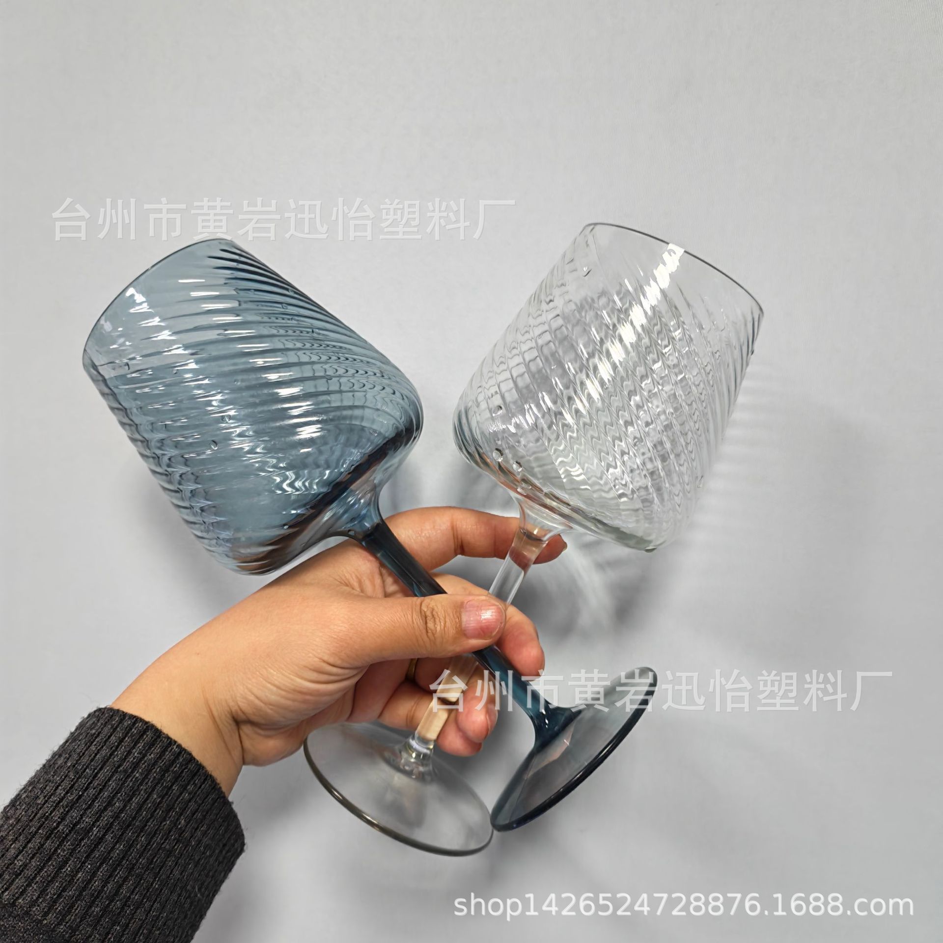PET材质塑料高脚杯500ml大容量红酒香槟杯一次性杯透明螺纹杯