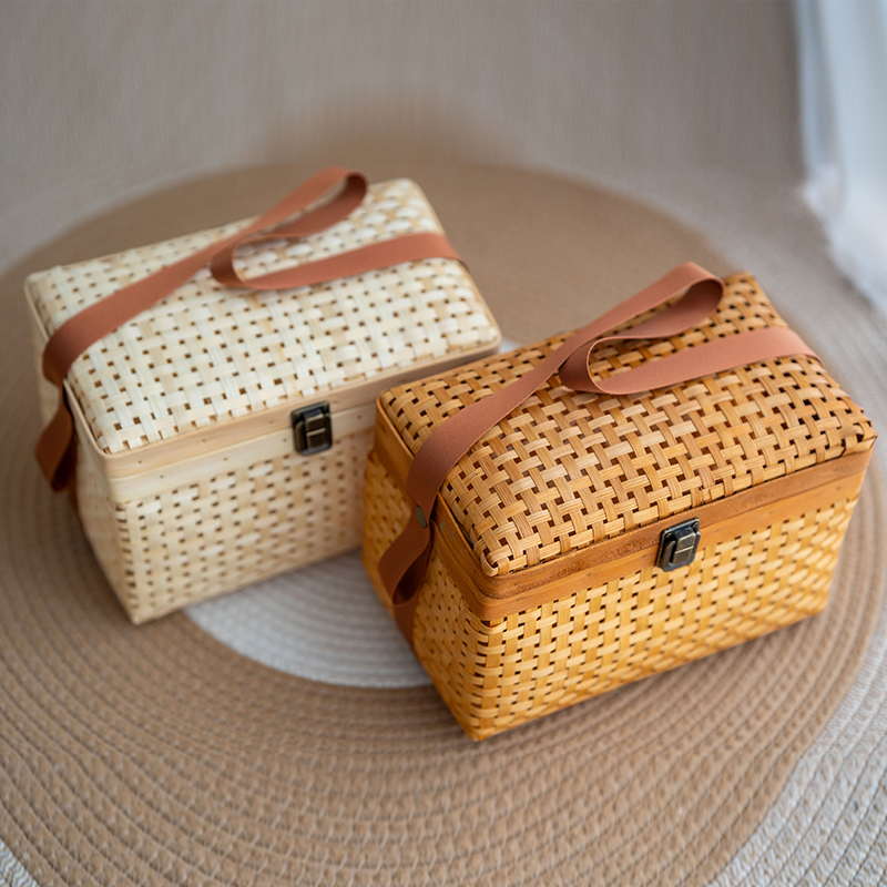 中秋节竹编礼盒篮端午节收纳盒带盖子手提编织篮节假礼品包装竹篮