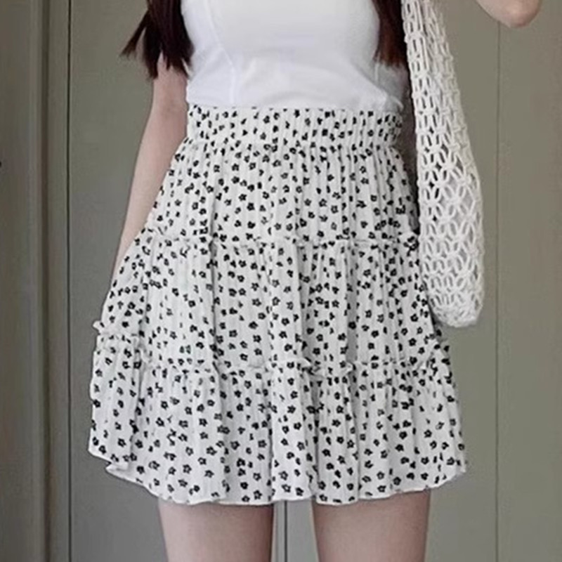 源头厂家定制碎花蓬蓬长裙女夏季高腰显瘦a字法式彩色蛋糕裙