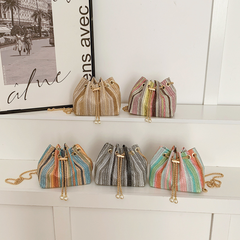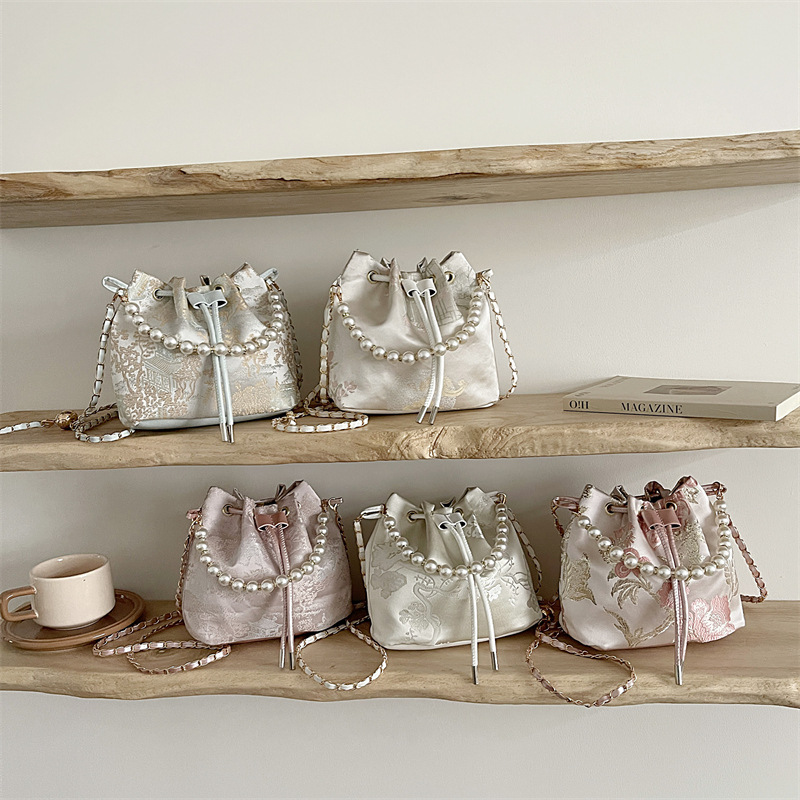 新中式刺绣水桶包跨境东南亚单肩斜挎包小香风珍珠链条国风手提包