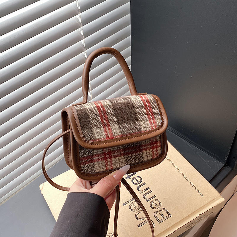 时尚格子手提包包女2026新款复古毛呢格子小众单肩包潮流斜挎包
