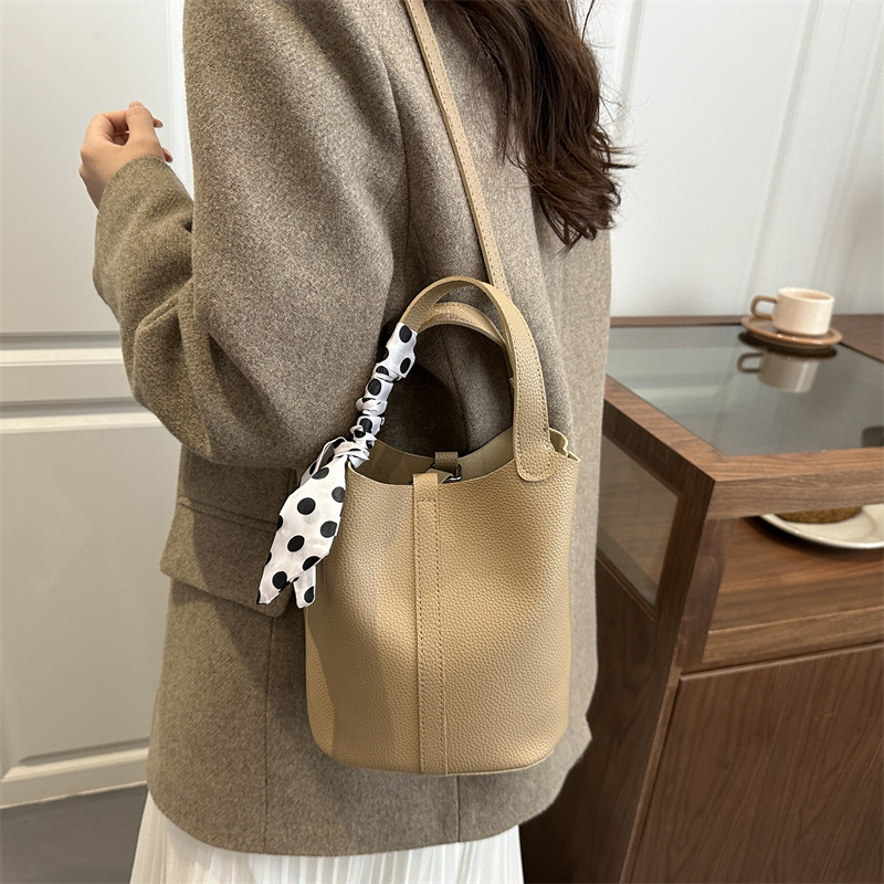 丝巾水桶包2025新款秋季时尚高级感百搭简约休闲单肩通勤斜挎包跨