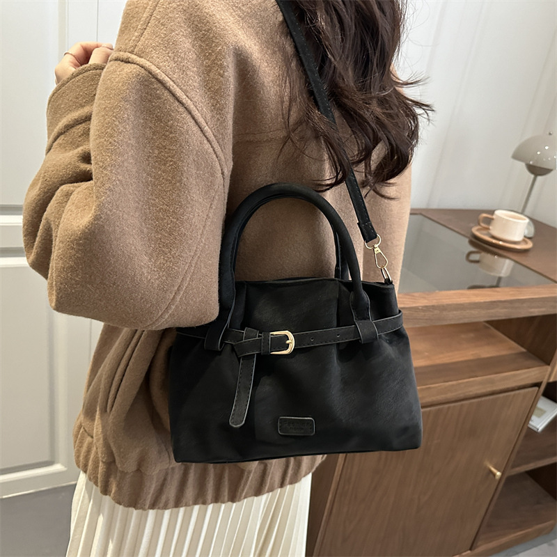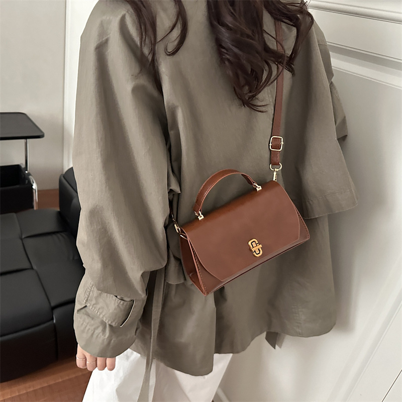 复古时尚斜挎包2026新款简约纯色包包女大容量百搭休闲手提包跨境