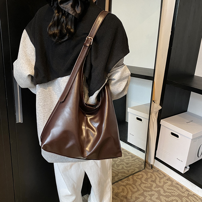 复古时尚跨境女士PU软皮单肩包通勤大容量托特包高级感气质包包女
