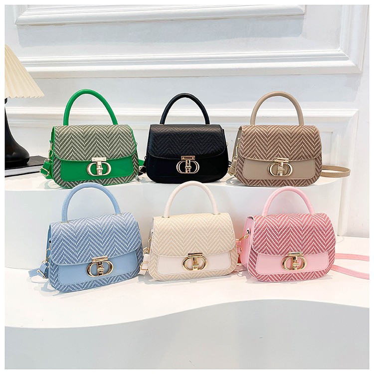 新款单肩包小众百搭斜挎包包女韩版时尚款式编织图案肩带可调节