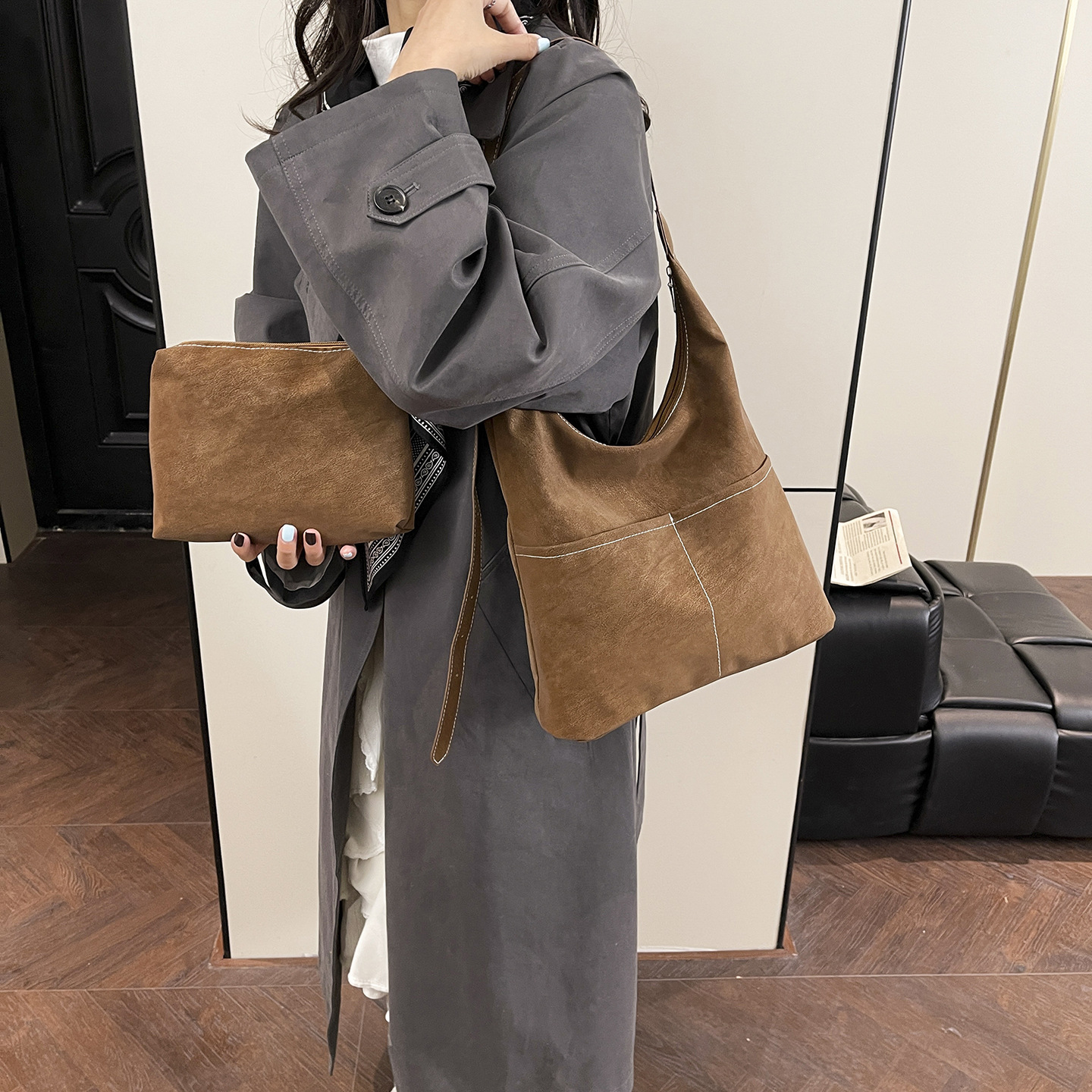 新款复古单肩腋下包时尚休闲包女托特大容量磨砂麂皮2025洋气秋冬