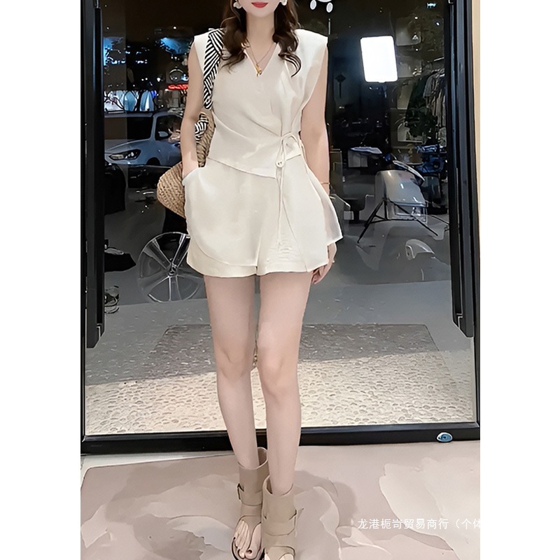 跨境2025夏季新款韩版时尚显瘦领无袖背心上衣+高腰短裤两件套夏