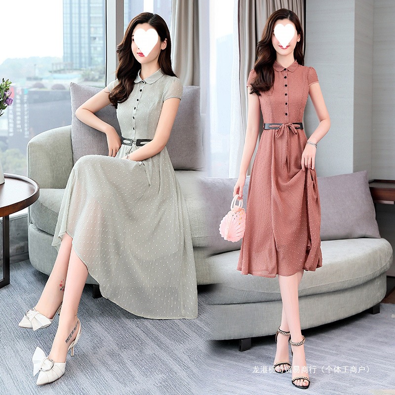 跨境9847女神范衣服新款气质职业收腰连衣裙御姐轻工装夏装冷淡风