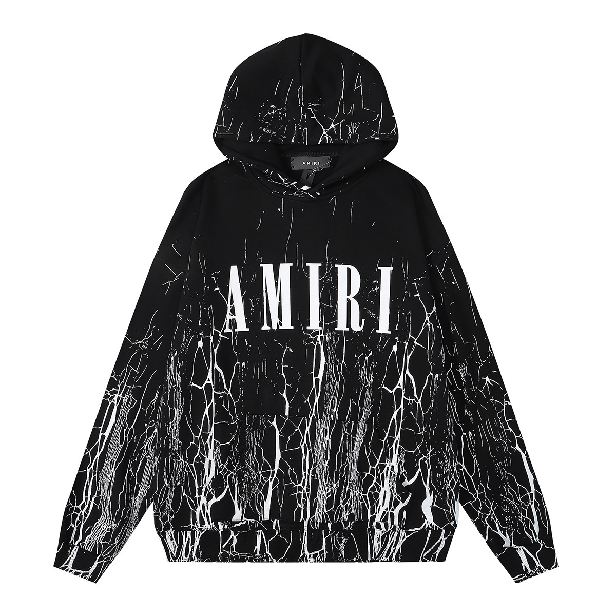 秋冬美式潮牌Amiri线条3D印花高品质毛圈连帽衫套装男女卫衣黑色