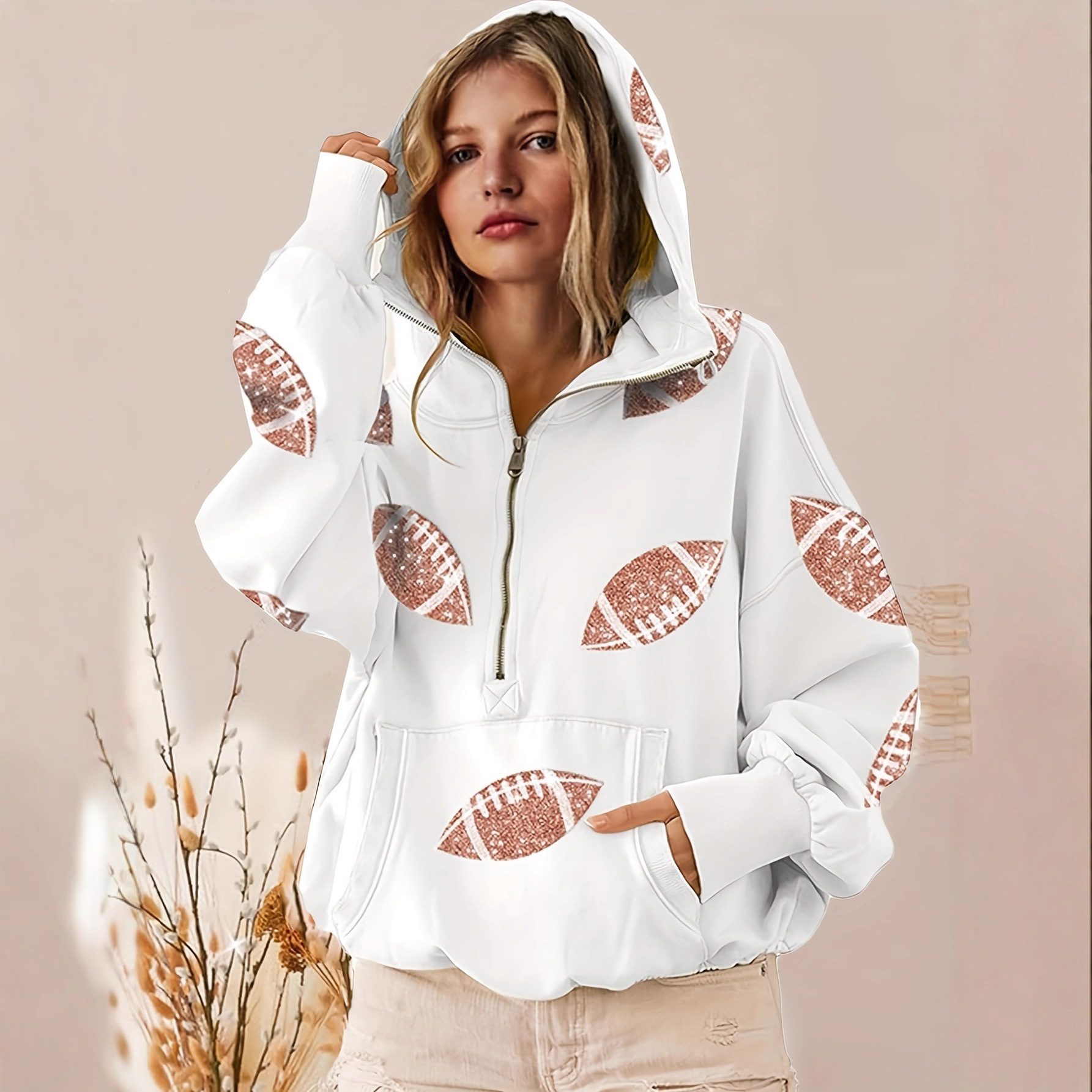 女式运动衫橄榄球印花运动衫套头连帽衫圆领长袖休闲卫衣