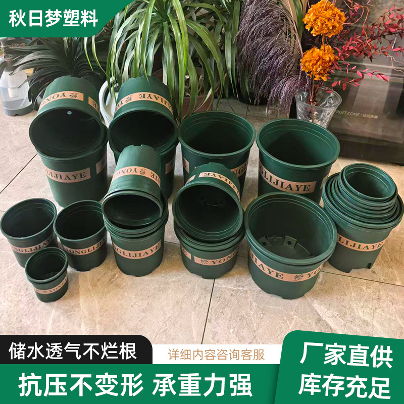 绿色加仑盆阳台绿萝多肉月季培育盆简约塑料花盆厂家多规格种植盆