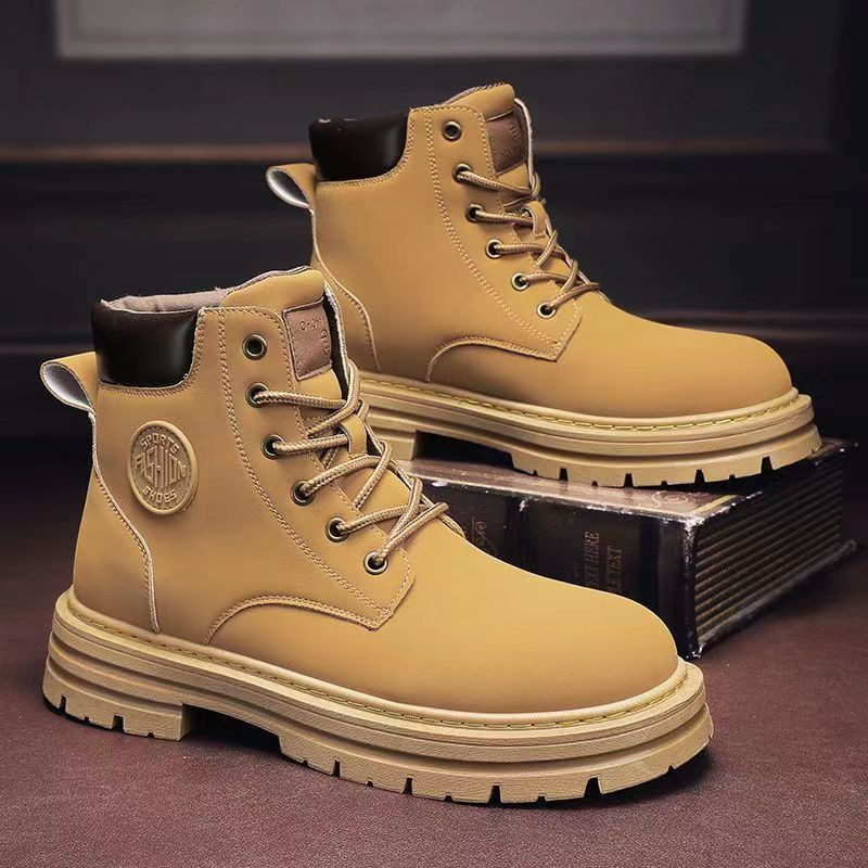 马丁靴男款2025春秋季新款工装高帮男鞋户外登山靴子英伦大黄靴男