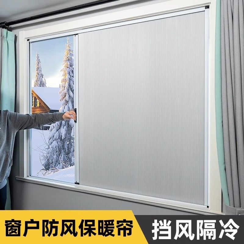 防寒挡风保暖遮光隐形窗帘家用铝合金折叠推拉式卧室推拉窗蜂巢帘