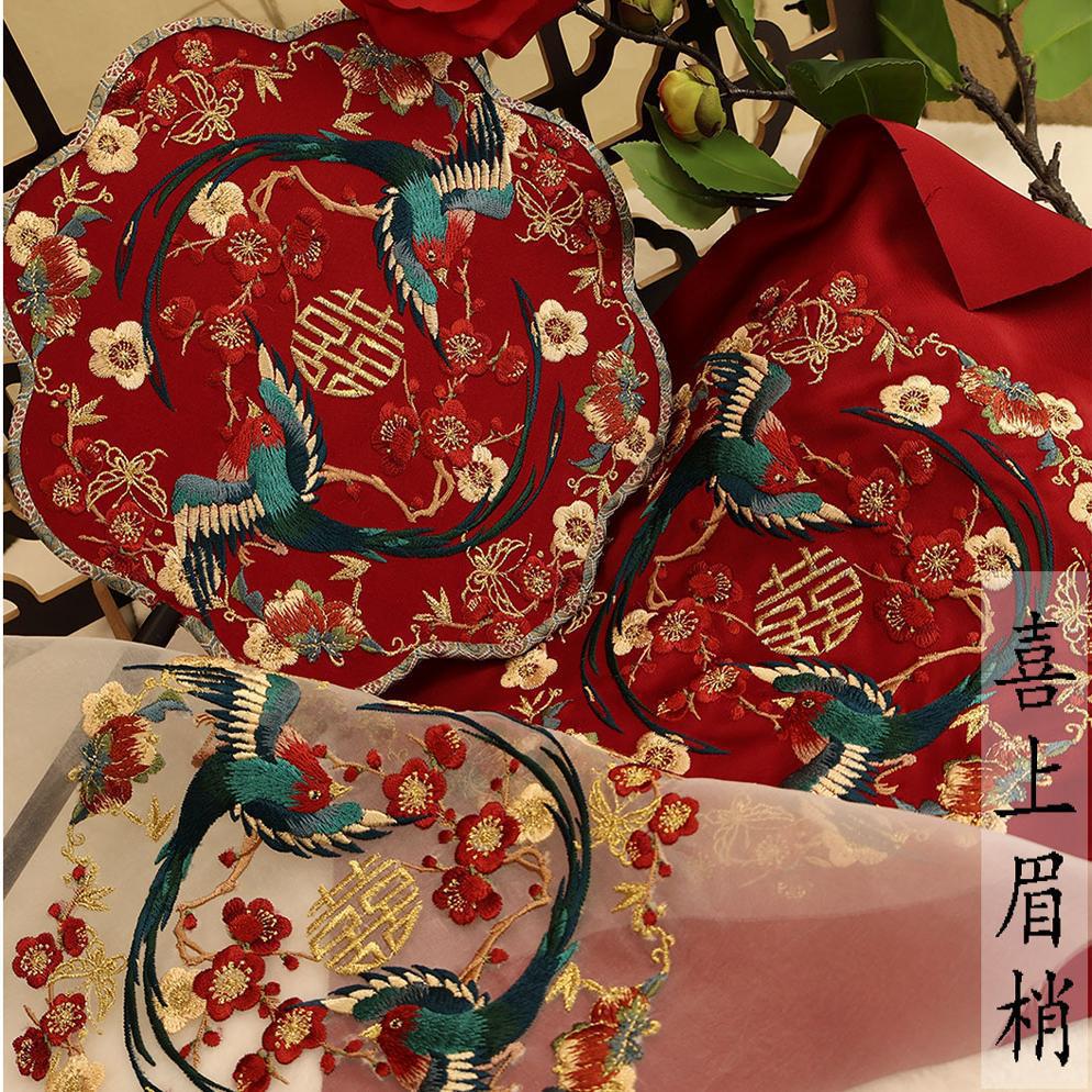【喜上梅梢】婚扇团扇口金包diy材料绣花片喜庆手工礼物
