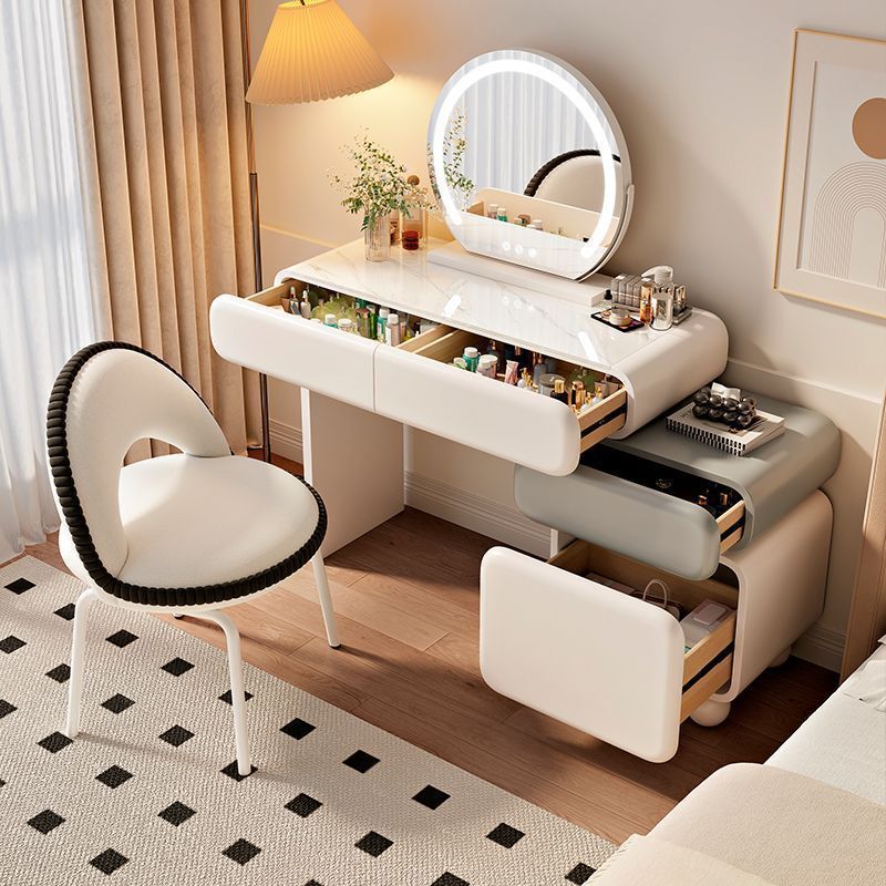 2025新款现代简约温馨梳妆台奶油风轻奢卧室梳妆台斗柜一体