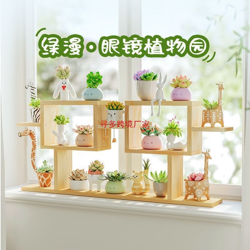 贴标桌面多层小花架多肉实木飘窗阳台客厅办公室花盆置物装饰绿植