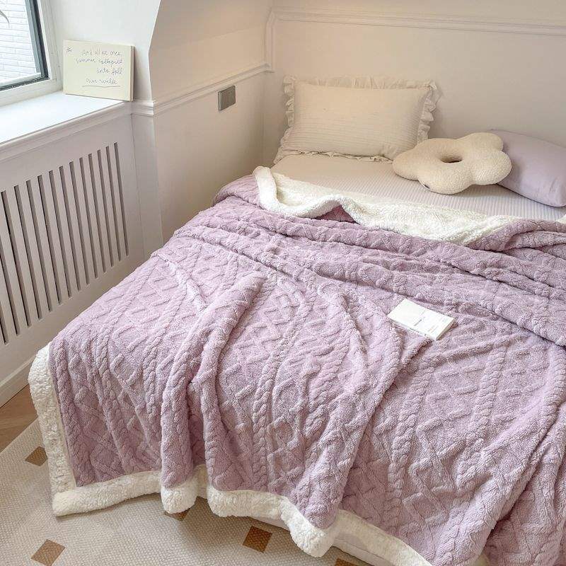 午睡毯毛毯盖毯北欧风羊羔珊瑚绒毯子绒空调毯床上提花牛奶沙发毯