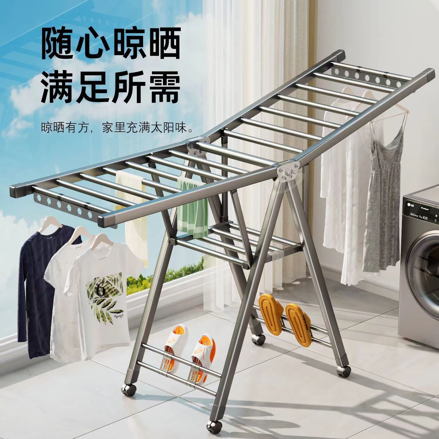 晾衣架落地立式折叠家用加粗加厚阳台多功能挂衣架宿舍晾晒被架子